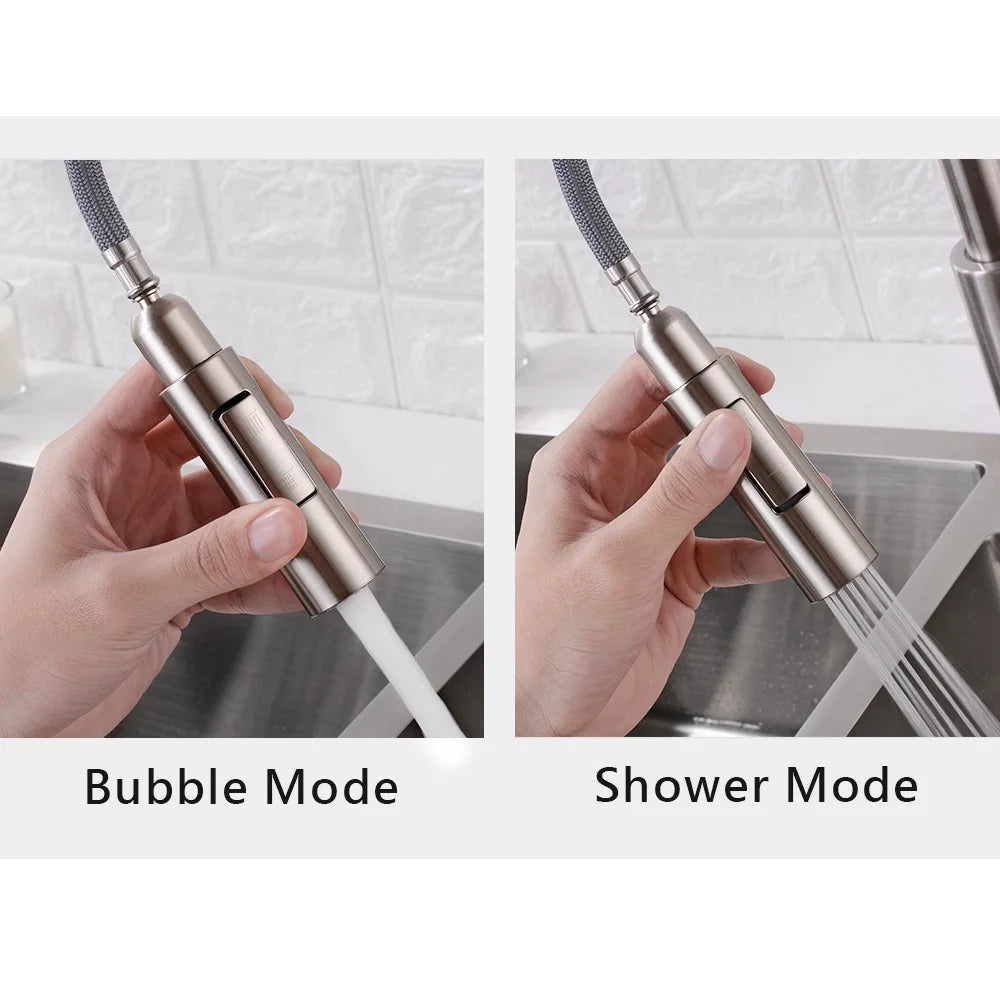 -Duas opções de jato: jato aerado, para maior economia de água e chuveiro a jato para maior pressão e facilidade na limpeza de alimentos e loucos;